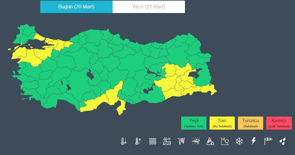 Meteoroloji Genel Müdürlüğü; Adana, Balıkesir, Bingöl, Bitlis, Bursa, Çanakkale, Diyarbakır, Hakkari, Hatay, Mersin, İstanbul, Kocaeli, Mardin, Muş, Sakarya, Siirt, Batman, Şırnak, Yalova, Düzce için sarı kodlu uyarıda bulundu.